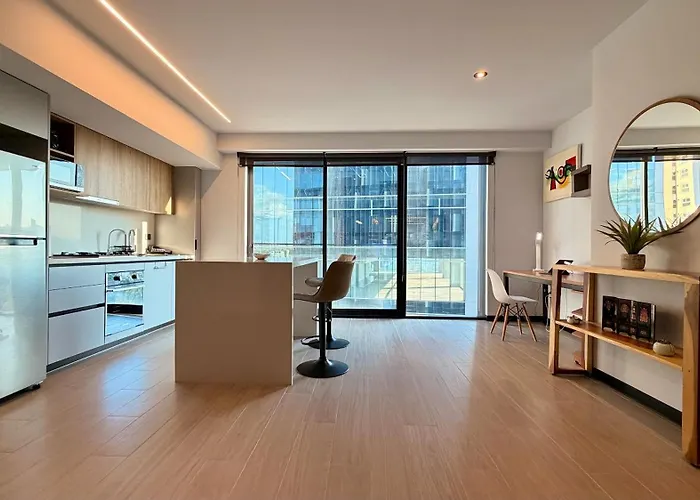 The spacious Departamento Elysian High Country Apartment Guadalajara is located in the Financial district of Guadalajara, about a 5-minute walk from the City Market Plaza Patria. This apartment offers a terrace with views of the street.